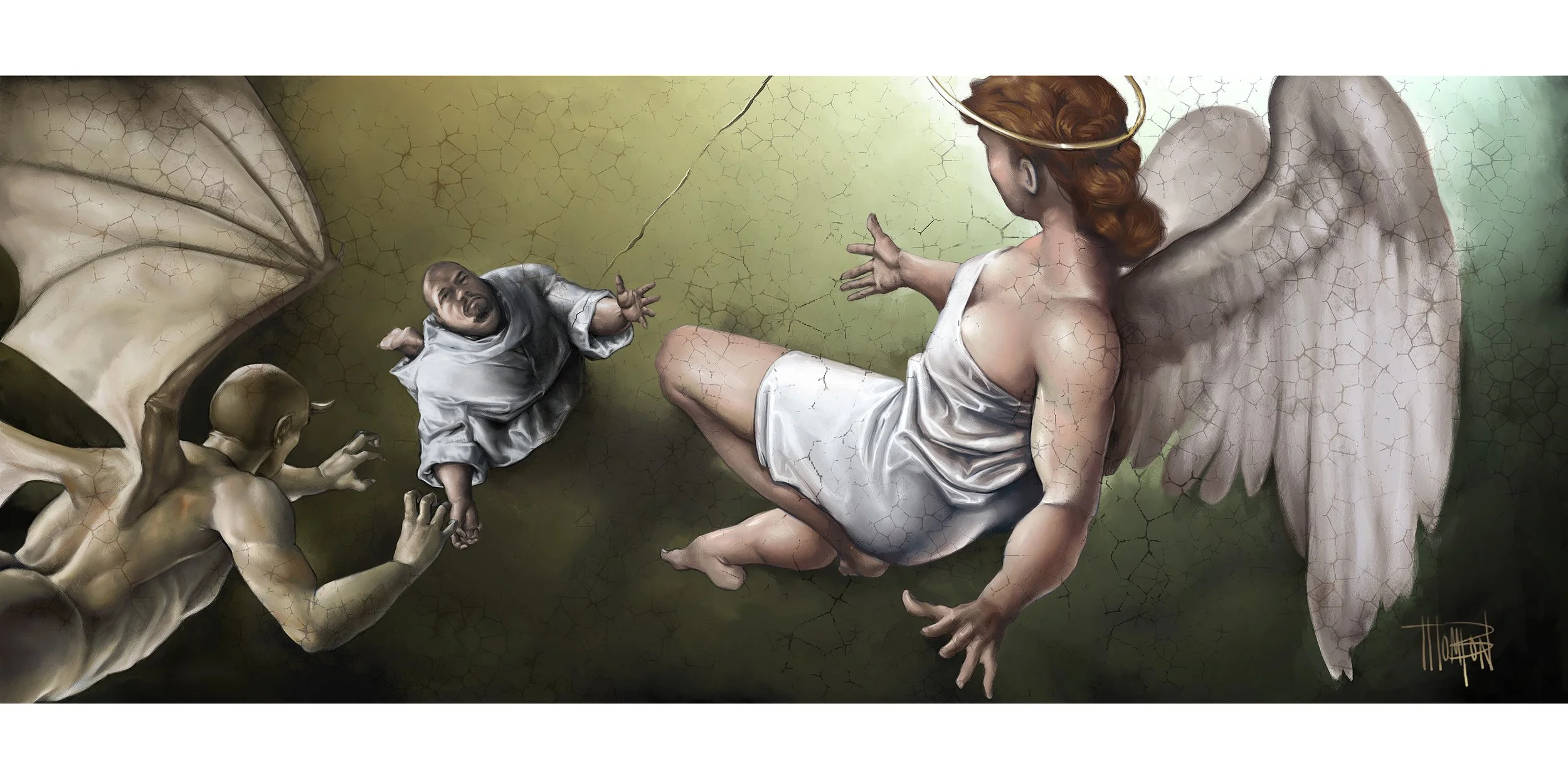 I created a backdrop painting for the Kool Mixx Tour multicity contest that Kanye West attended in Chicago, where he saw it, liked it, and asked me to collaborate with him on a painting for his Jesus Walks Video. It was amazing! Being able to get direct feedback from the people that you paint, draw, or sculpt, that’s the highest compliment to me; it was a life-changing thing, I crossed that off my bucket list… the best job in the world, I wouldn’t trade it for anything.